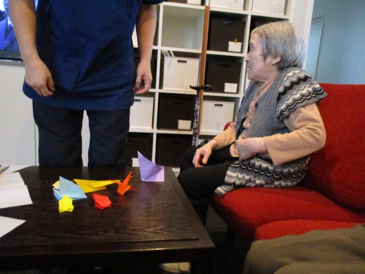 「この色にする!」と好きな色を手に折り始めたT様。