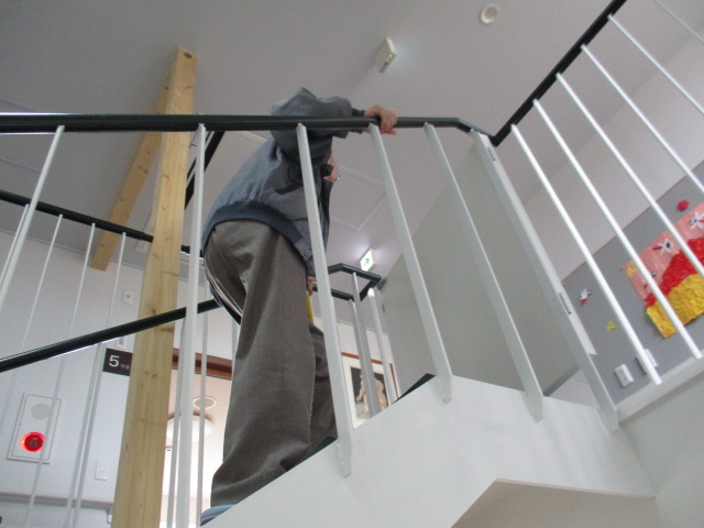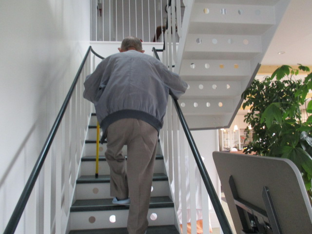 N様は足の上げ下ろし訓練の成果!今では階段の上り下りも職員も驚くほどスムーズになり、つまずく事も全くなくなりました。ますます元気です*^^*