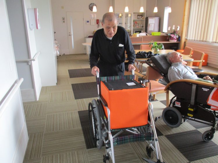 毎日欠かさず歩行訓練をされているS様。「車椅子」を押しての歩行訓練を試してみたい。