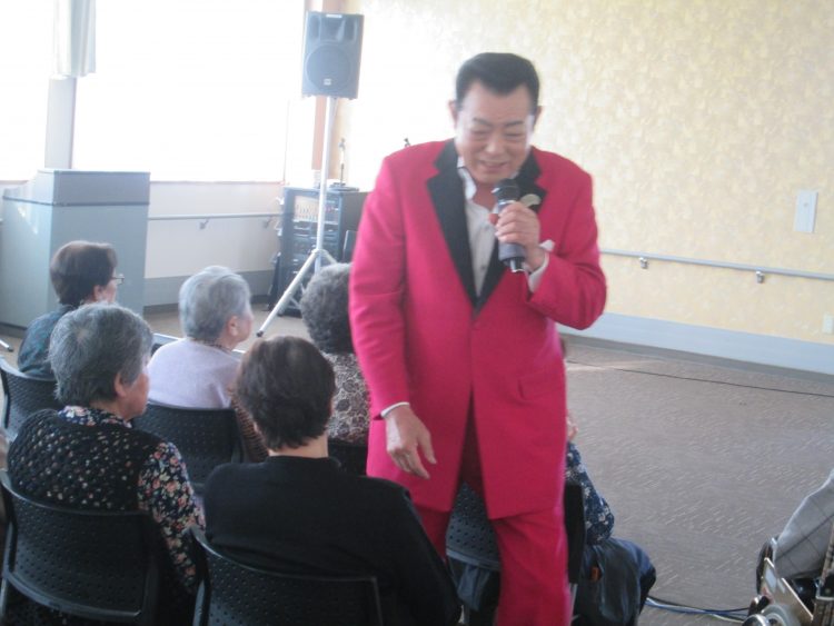 お客様と握手しながら歌ってくれた山中様、リクエスト曲にも答えてくれてお客様は満足したようです。他にもアンコールの声が掛かり、もう1曲歌ってくれました。