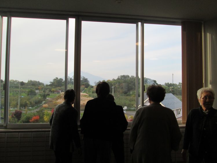 建物の上からの景色に見とれ「きれいだじゃ」「山見れればさっぱすの」