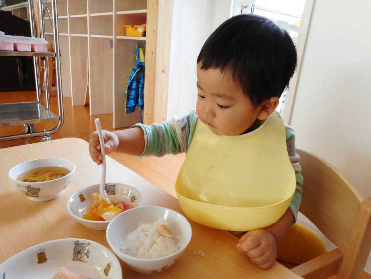 ちょっぴりお兄さんのTくんは、一人で上手にスプーンを使って、もぐもぐ!