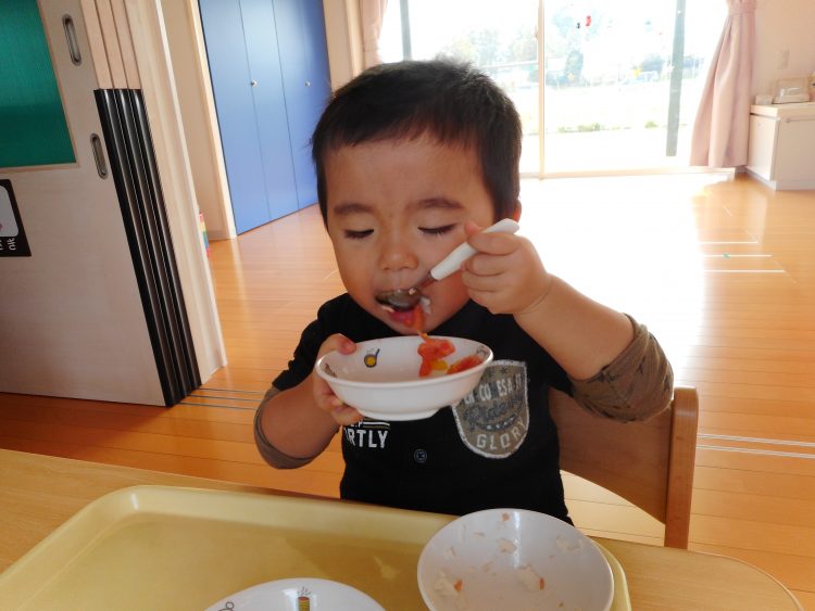 今月から給食をスタートしたS君、食欲旺盛で