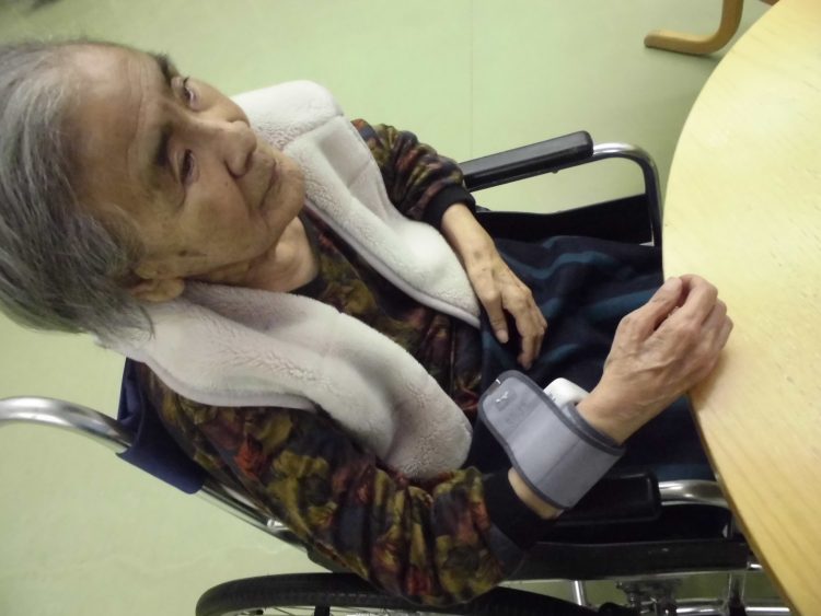皆様が起きて来られ、朝食前に主に今日入浴する方のバイタル測定を行ないます。人によって体温も血圧も大分違います。慌しくも新しい1日はこのようにスタートしていくのでした。