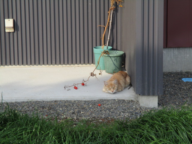 「おっ」本日、暖かかった為、猫が日向ぼっこしていました^^気持ち良さそうですね^^