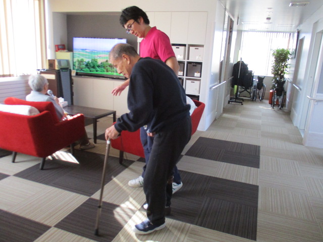 S様の様子です^^立ち上がり、歩行訓練の様子です。S様、毎日無理なく、頑張っております!