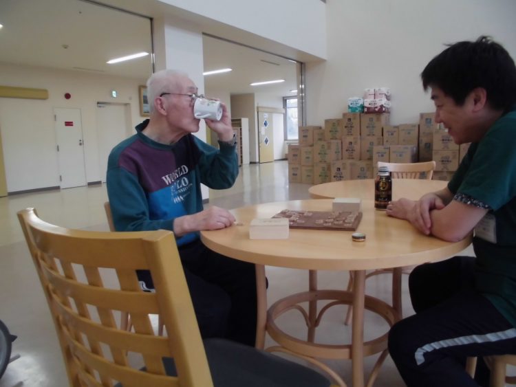 午後のお茶会にてT様とY介護士が昨日の将棋のリベンジマッチ!!結果は・・・後日報告させて頂きます。ショート(K.M)