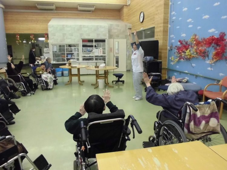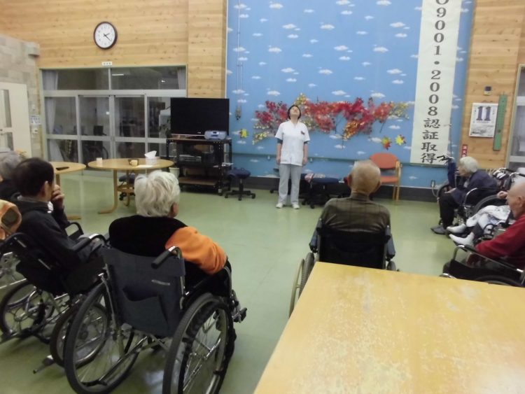 本日はN看護師による体操を皆さんで行ったのでその様子をお伝えしたいと思います。            このように円になり行いました。