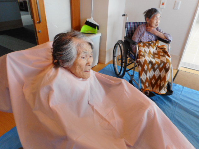 髪を切ってもらいながら、美容師さんとの会話も楽しまれている様子でした。