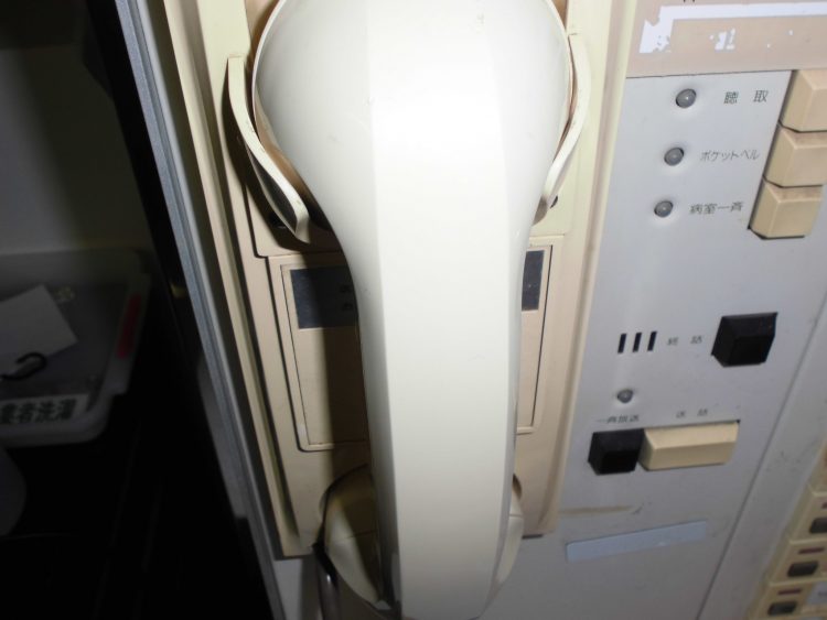 お客様のお部屋にはナースコールがあり、用事がある場合などこの受話器で直接お部屋に声が届きます。現在使用されている人は少ないですが、「ベッドから起きたい」やオムツ交換の訴え等の用件が主となっております。