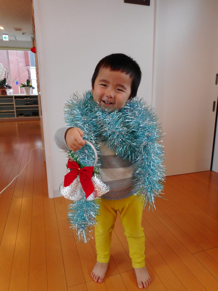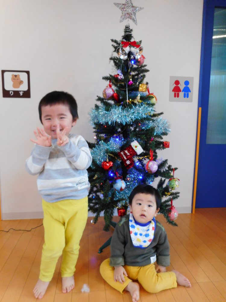 保育園の真新しいツリーに、みんなで飾りつけをしました!