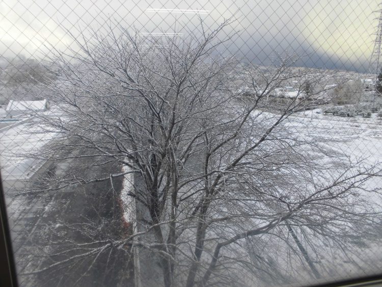 皆さんこんにちは。今朝、外に出たら10cm位雪が積もっていてとうとう、冬将軍がやって来たなと思いました。今日は、岩木山も見えず入居者様も残念だと言っていました。新館ショ-トステイから見る景色も一面銀世界でした。明日は晴れて、雪がかかった岩木山が見れるいいなあ。
