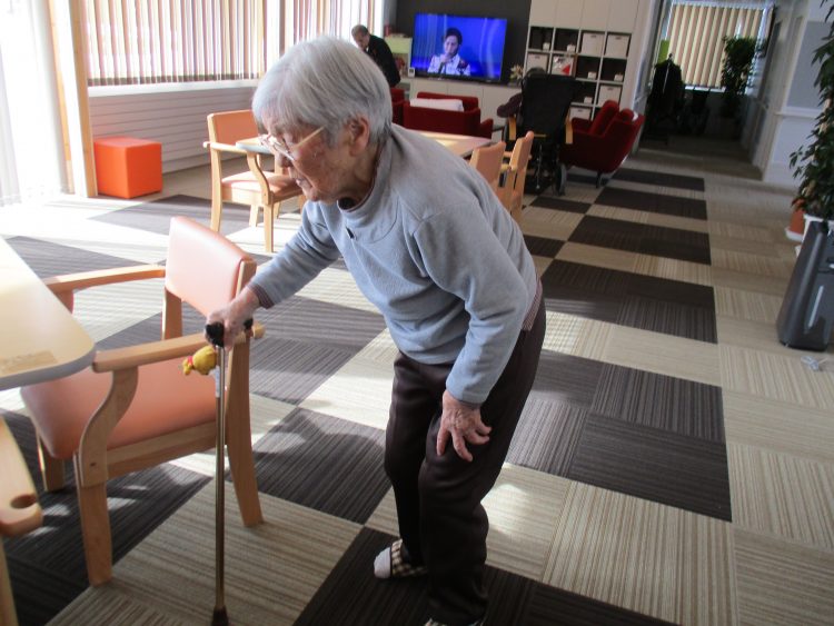 それでは、寒さにも負けずに!本日は全員で(職員含め)体操、歩行訓練を行いました。