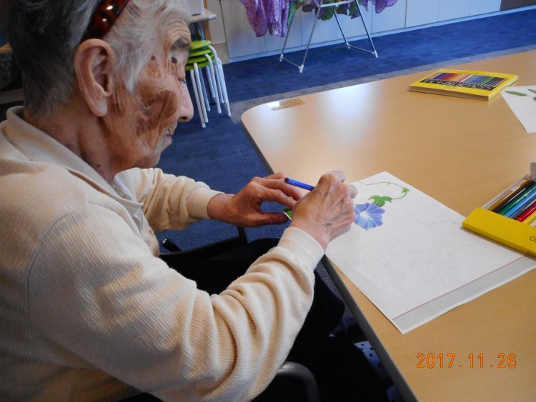ショートステイ山崎では、久々にぬり絵をして過ごしました。