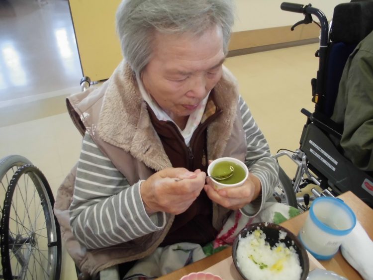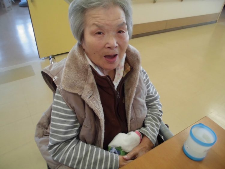 もう少しで昼食が来る事を伝えると、「早く来ないかな」と待ちきれないようでしたが、ご飯が来るとてもおいしそうに食事されていました。