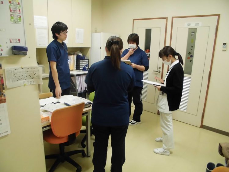 夜勤スタッフが出勤し、まず申し送りに参加します。
