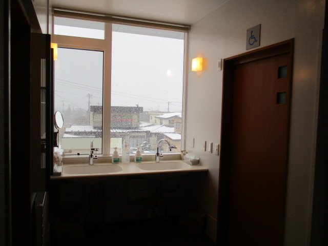 目覚めたら、洗面所にて整容していただけ、大きな窓の外には市街地が一望できます。