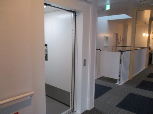 2階への移動には、エレベターと階段でお客様に応じて誘導させて頂きます。
