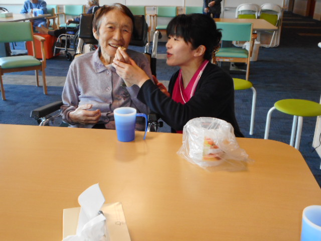 「美味しい?」「うん、美味しい」と職員と会話されながら食べてました。