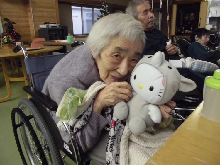 S様は朝から機嫌がいいようで、たくさんお話して下さいました。かわいいぬいぐるみをタオルで包もうとしておりました。