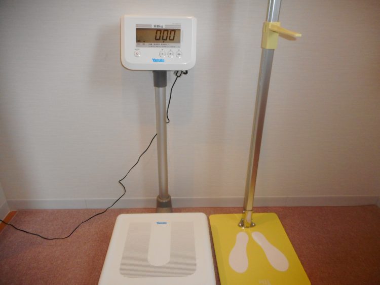 1人で立てる子は、皆さんも良く知っているタイプの身長計と体重計を使って測っています(*´▽`*)