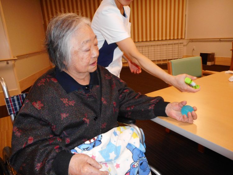 本日の機能訓練はハンドグリップを使っての手指訓練です!