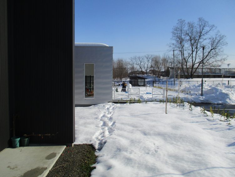 クッキーモンスターにお礼を言おうと外に出ると、お隣の保育園では大きな雪だるまを作っていました!「頑張ってね!」と手を振ると笑顔で手を振ってくれて、とてもほっこりした気持ちになりました。