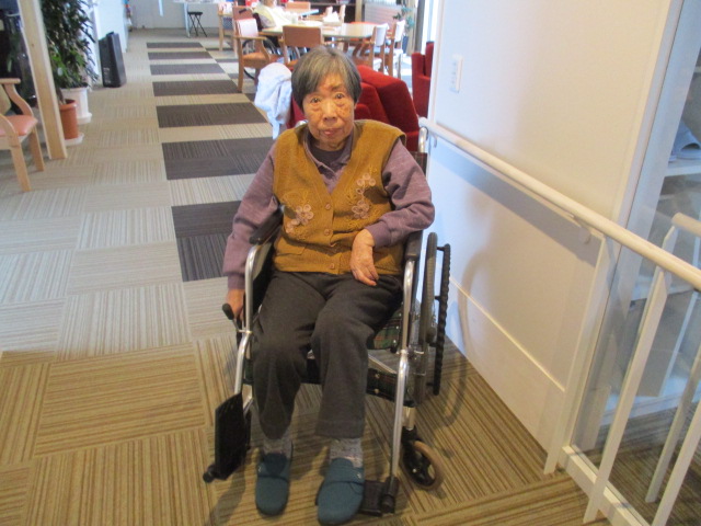 車椅子の自走訓練真っ最中のS様、だんだん早くなって、満足顔です*^-^*