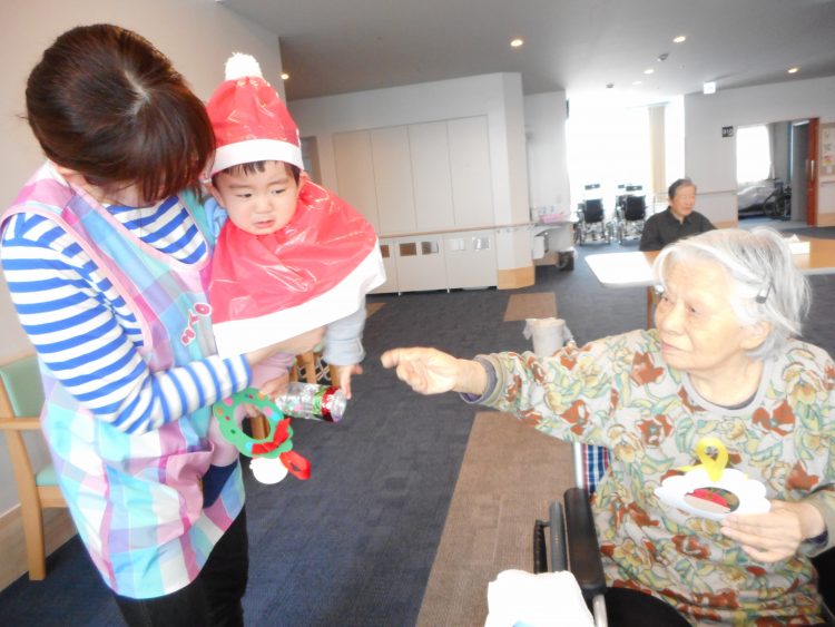 そんな今日は併設する保育園から小さなサンタさんがお客様にプレゼントを届けに来てくれました♪