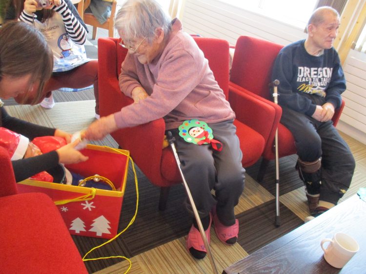 保育園児にささやかなプレゼントを渡し、利用者様「めごいなぁ」「人形みたいだなぁ」と大変喜ばれておりました♪