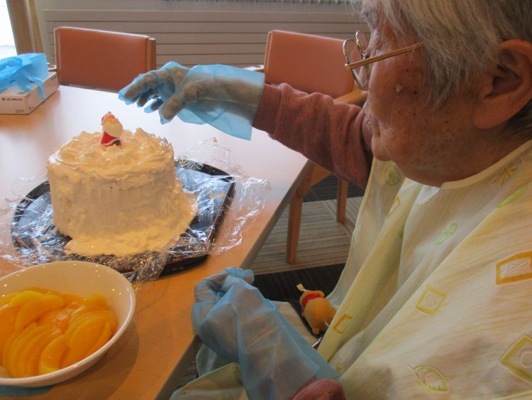 次に、クリスマスケーキの飾り付けを行いました♪上手に飾り付けが完成されました