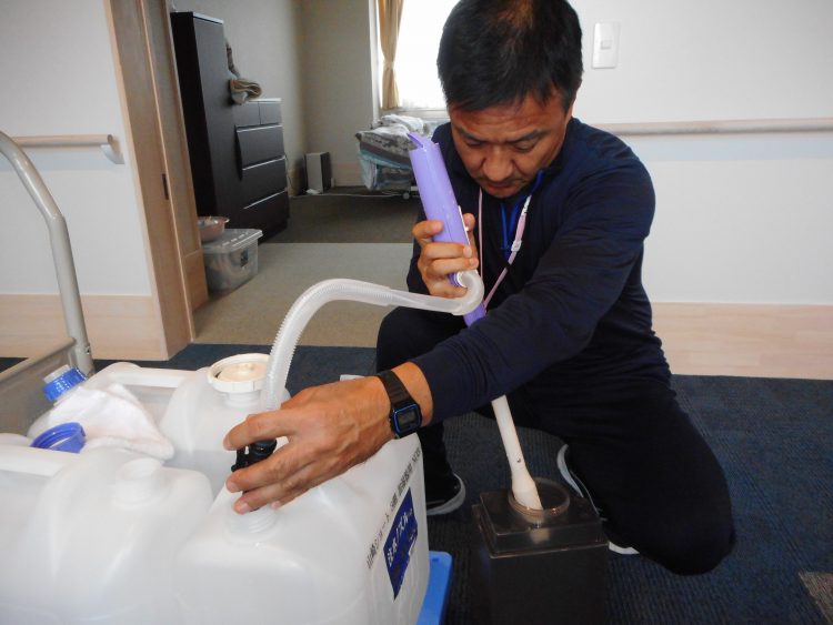 ふたを閉めて機械の横にセット。あとは電源を入れるだけです。簡単ではありますが、冬は暖房を使う機会が多い為、必要秘需品なのです。