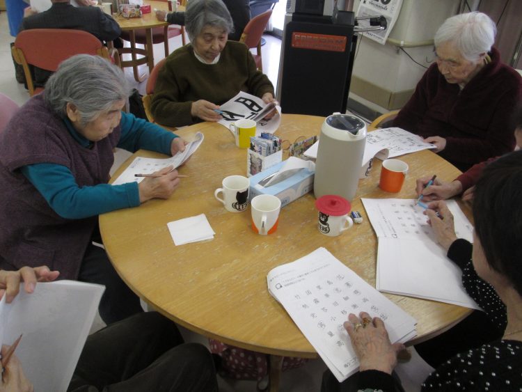 今日のレクリエーションは、皆さん頭を悩ます“脳トレ”!考えると・・段々かちゃくちゃねぐなります。ですが、発想がとっても面白く!楽しく考えて珍回答がでました。