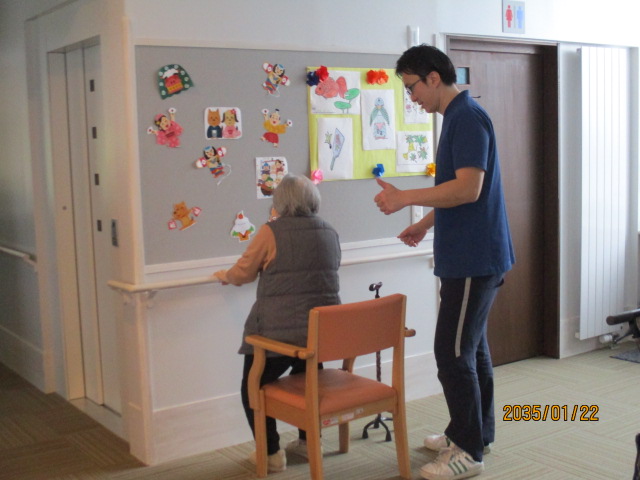 最近は肩の体操も始めたS様は立ち上がり訓練中です。