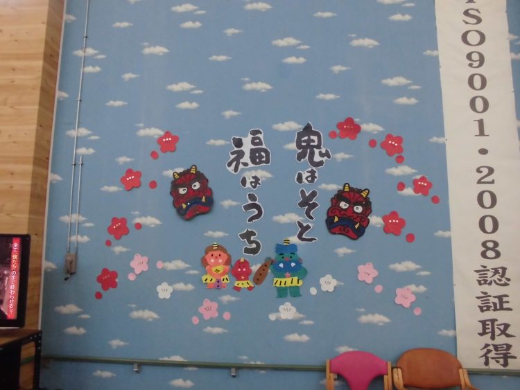 一方、園の中では節分の飾り付けをしております。