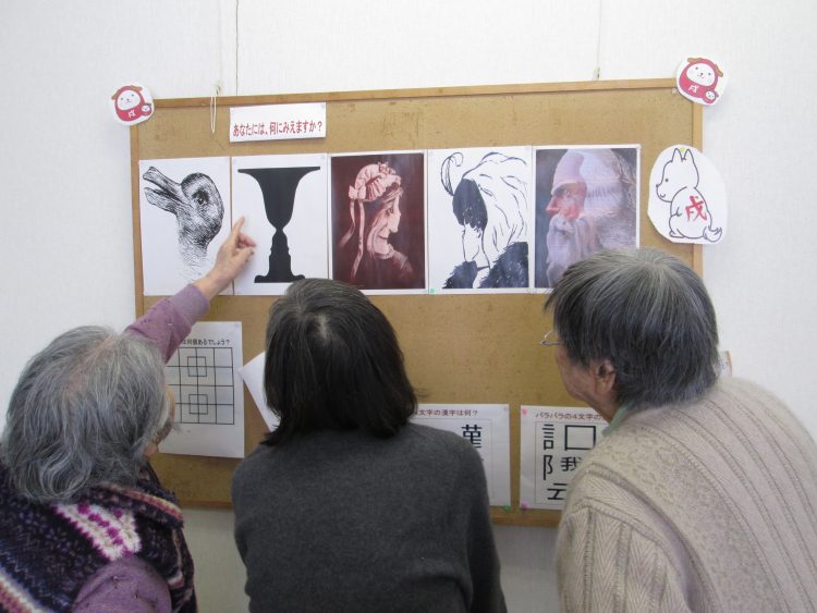ホール壁画に、簡単なクイズや問題を掲示しています。