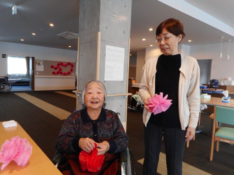 こちらが3階のお客様。折り紙でかわいいハートやクローバーを作ってくれました。