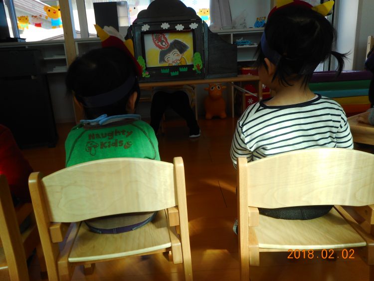 紙芝居を見た後は、豆あてゲーム♪♪