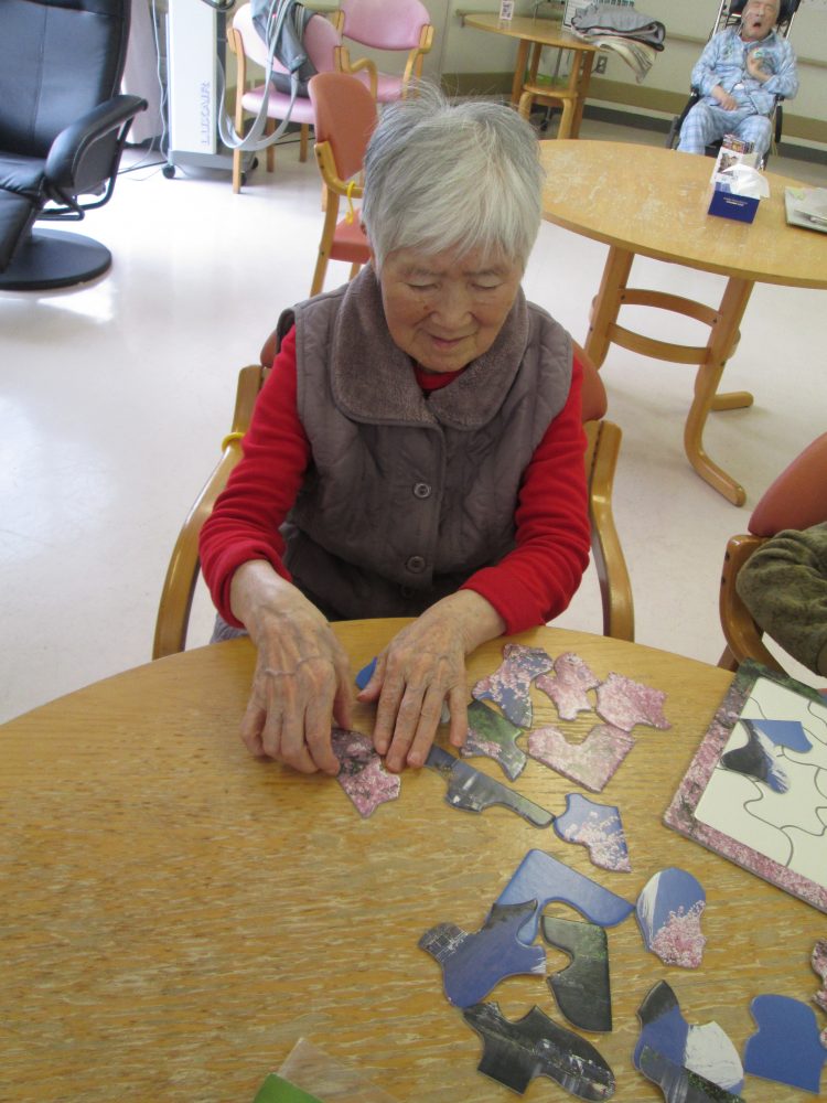 問題プリントができないお客様には今日もパズルをやっていただきました。脳トレをしないと帰れないと張りきって問題を問いておりました。