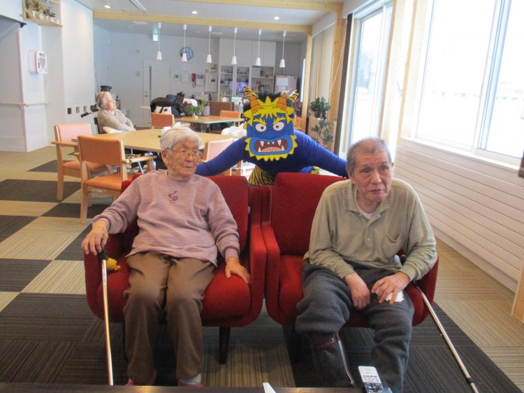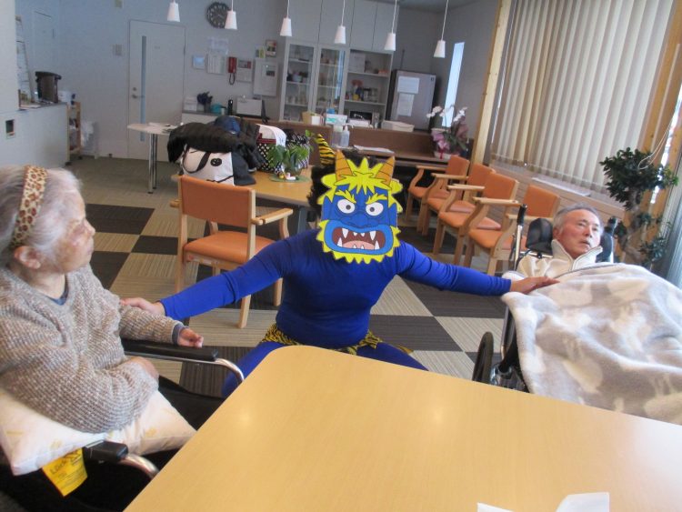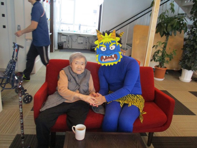 今日は節分、と言うことで、山崎地区にも青鬼がやってきました!