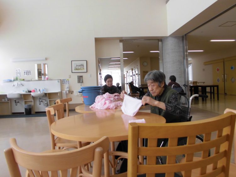 午前中にA様とN様におしぼりたたみをお願いしたところ、快く畳んで頂きました。
