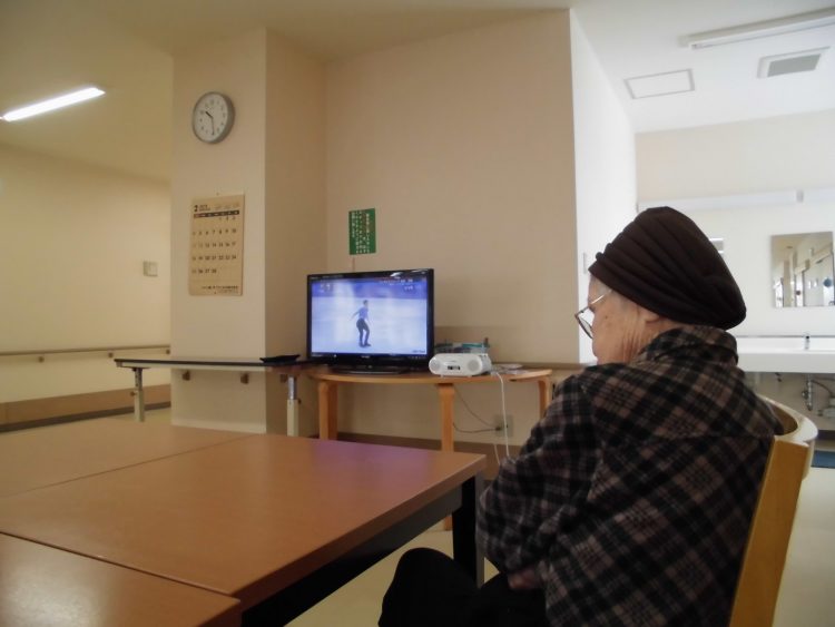 その後ホールにてお茶会に参加され、冬季オリンピックのフィギアスケートを鑑賞されてます。