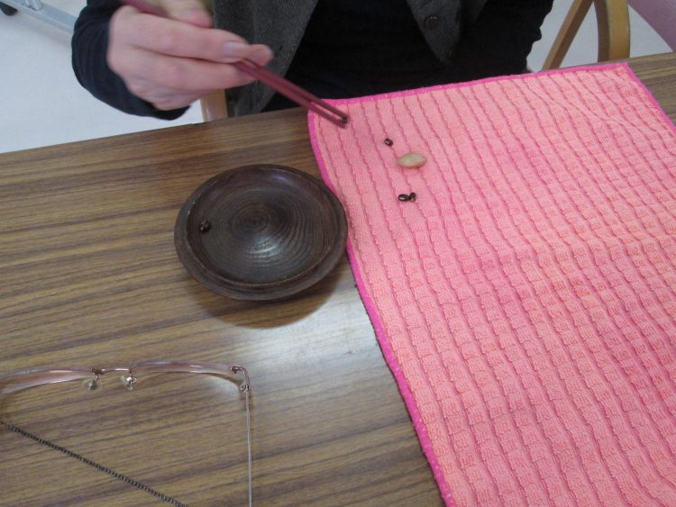 本日のレクは・・・『箸でつまんで』