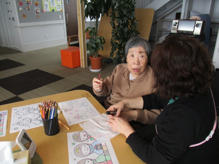 話は尽きないようですが切り終えたところで、また塗り絵を再開し集中して塗られておりました。