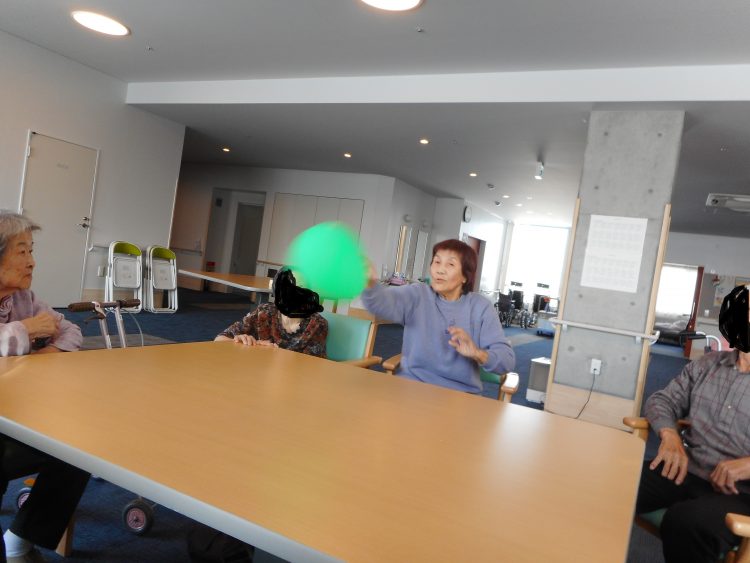 お茶会が終わるとあるお客様が「なんかやることなーい?」と話された為、「風船バレーしましょうか?」とスタッフが声をかけると「いいね!」と皆さんノリノリでした。