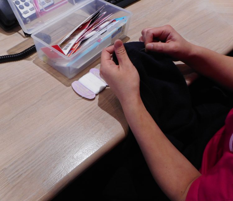 裁縫セットを使い衣類の手直しをしております。