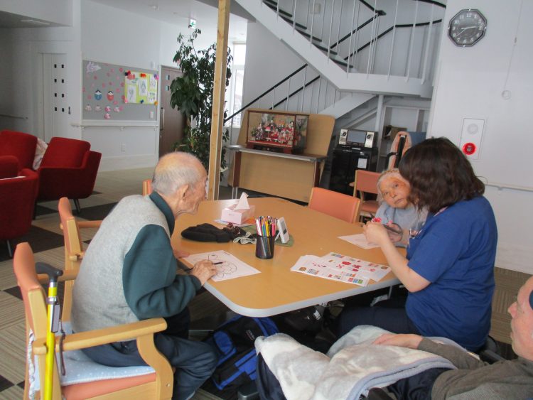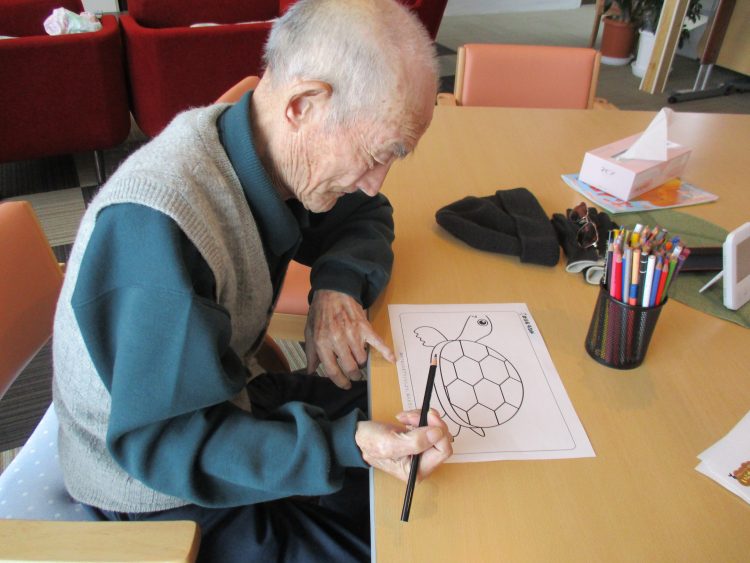 N様「黒だべな^-^どんだ~?」と亀の色が決まり眺めながら塗り始めていました。向かいに座られているN様は「丁寧に塗ってるね」と関心されていました。完成まであと少し!!次回、来られた際にまた続きを行いましょうね♪