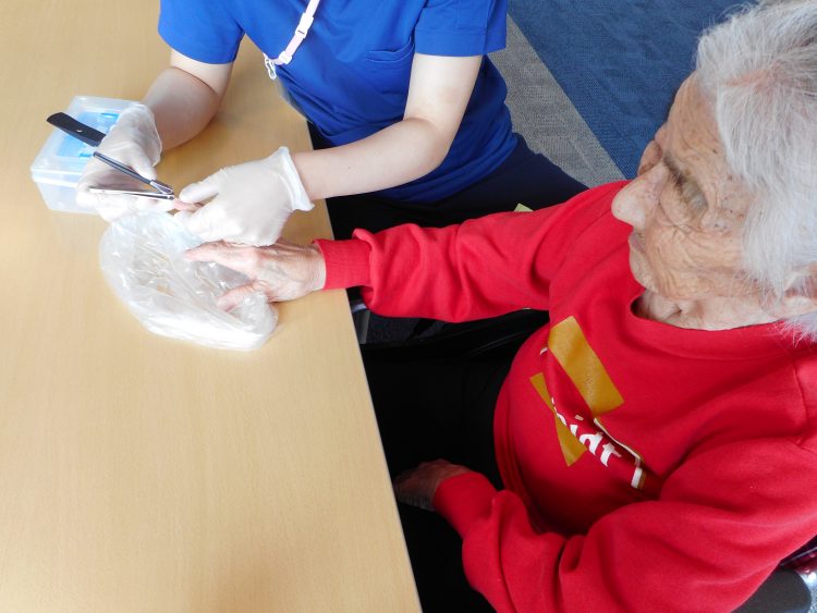 美味しいゼリーを食べられてます。 やはり、美味しいおやつはみなさん、喜んで自力にて完食されて