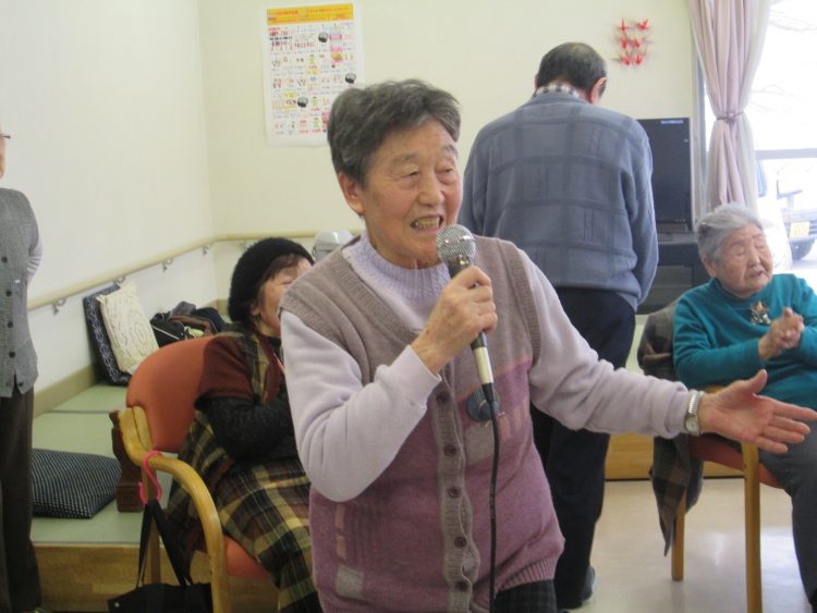 今日のカラオケは、歌が好きなお客様が揃いまして、男の方たちもとっても盛り上がりを見せて下さいました♪御ひねりが飛び交い花吹雪も舞散り~という訳で・・・!てんわわんや!最後にはおうよう園のスターS様『海峡』でラストを飾りました。いつもの歌う面々が揃い、懐かしい曲を一緒に歌いました。次回もたくさん盛り上がりますように!!
