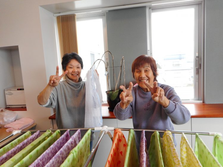 職員が洗濯物を干していると「どれ、私もやるか」と側に寄ってきてくれました。